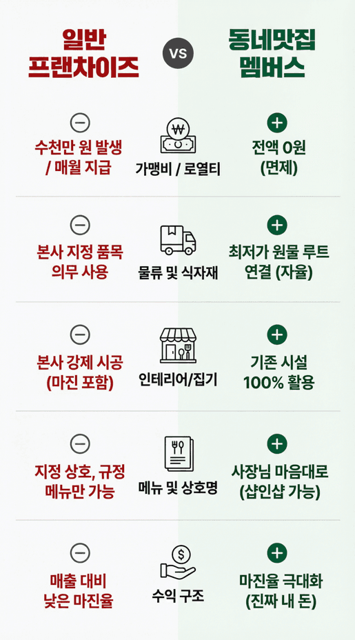 18년간 수많은 자영업자를 살려낸 진정성, 이제 '동네맛집 멤버스'로 그 혁신을 이어갑니다.